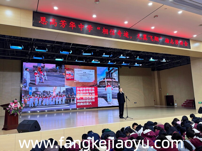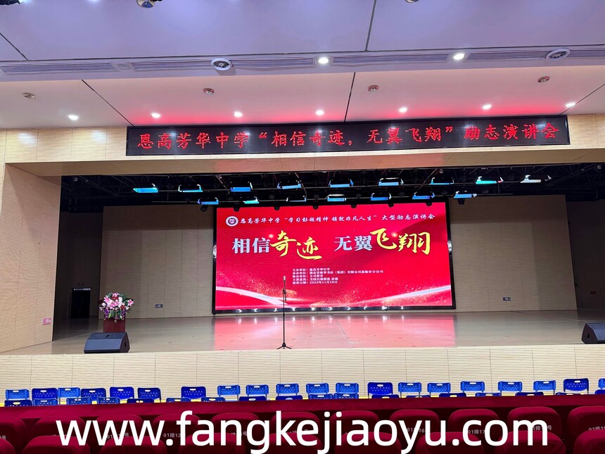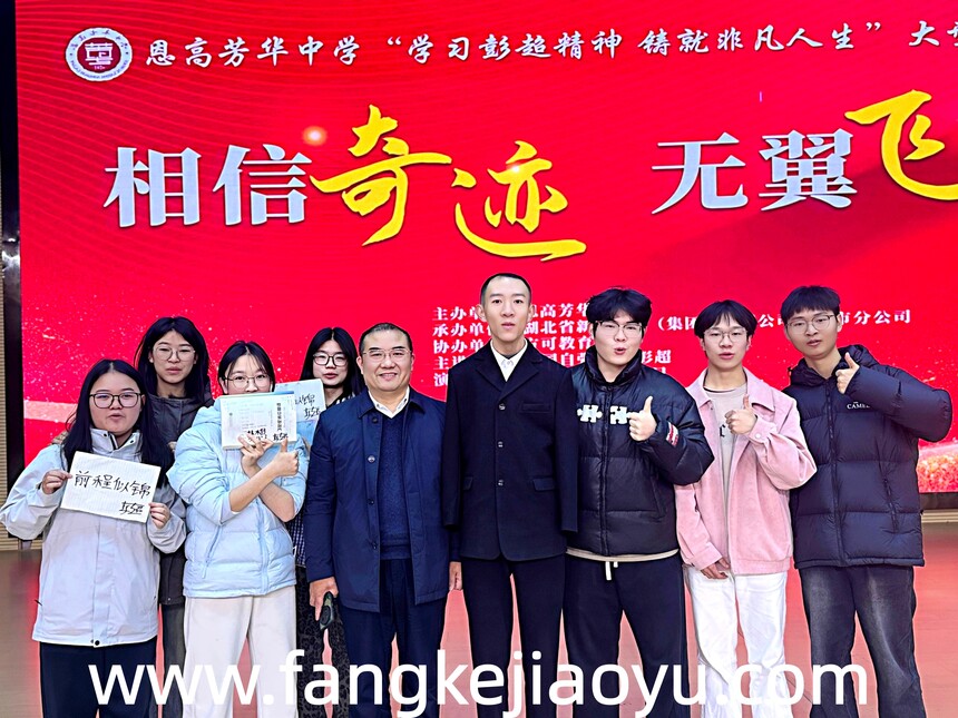 2025.11.18/湖北省恩施州恩高芳华中学方可教育励志演讲时间:2025-11-22 学校:恩施州恩高芳华高级中学 时间:11月18日,上午 主题:相信奇迹,无翼飞翔 主讲:方可教育金牌讲师彭超 对象:高三年级全体师生