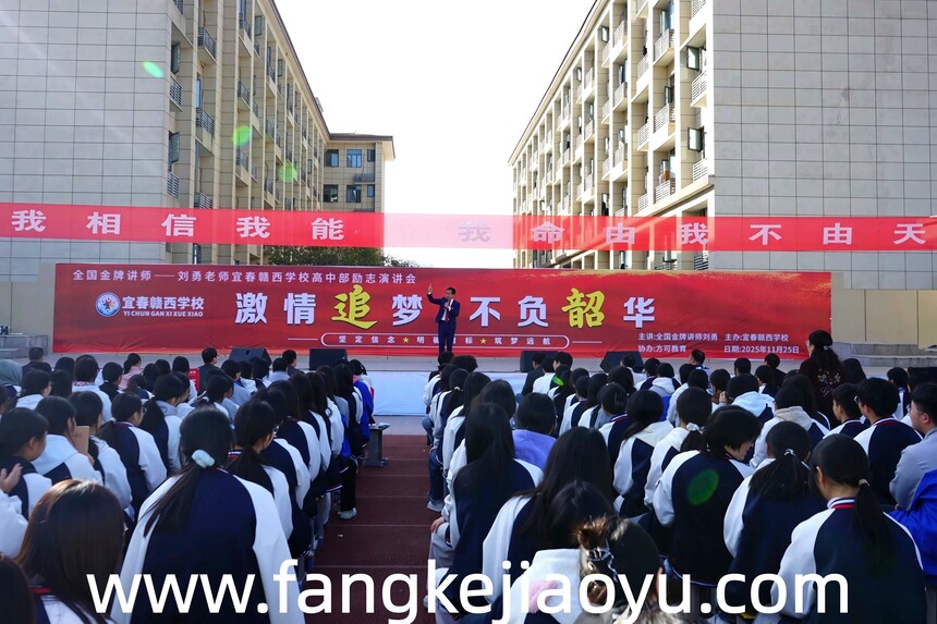 2025.11.25/江西省宜春市赣西外国语学校方可教育励志演讲时间:2025-11-27 学校:赣西外国语学校 时间:11月25日,下午 主题:激情追梦,不负韶华 主讲:金牌讲师刘勇 对象:高三年级全体师生