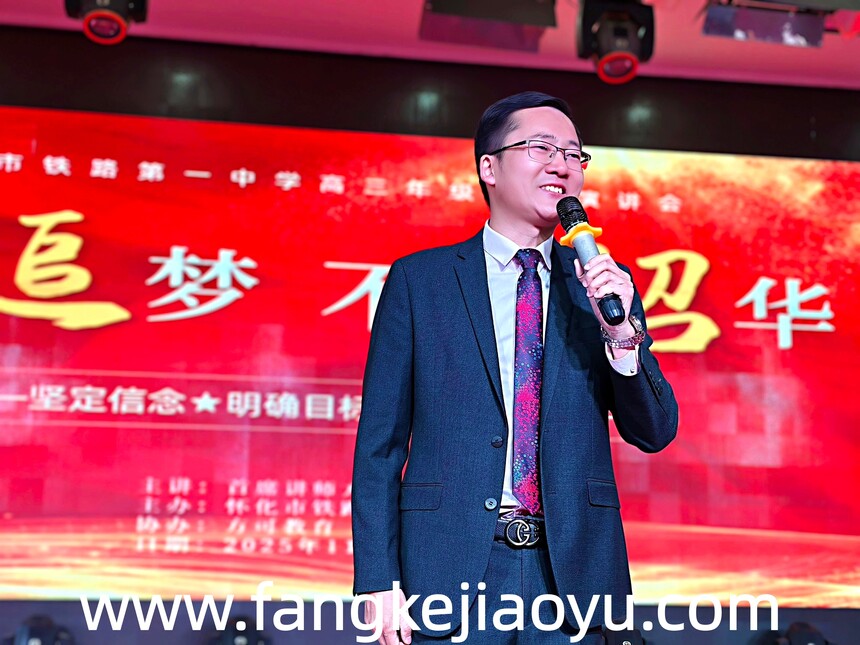 2025.11.29/湖南省怀化市铁路第一中学方可教大型育励志演讲时间:2025-11-29 学校:怀化市铁路第一中学 时间:11月29日,上午 主题:激情追梦,不负韶华 主讲:首席讲师方可 对象:高三年级全体师生
