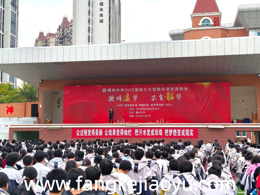 2025.12.01/江西省赣州市赣州中学方可教育大型励志演讲时间:2025-12-03 学校:赣州中学 时间:12月1日,下午 主题:激情追梦,不负韶华 主讲:首席讲师方可 对象:高三年级全体师生