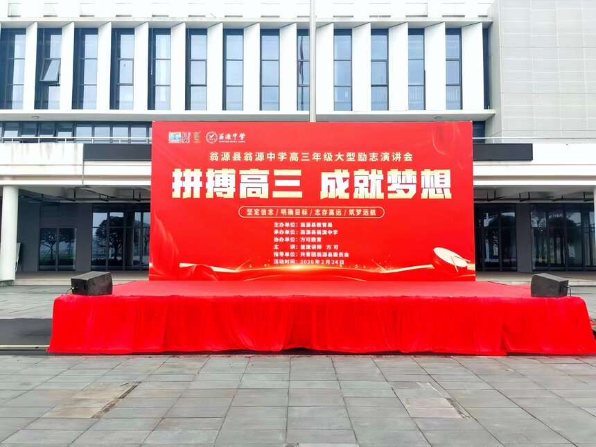 2026.02.24/广东省韶关市翁源县翁源中学方可教育励志演讲时间:2026-02-27 学校:翁源县翁源中学 时间:2月24日,上午 主题:拼搏高三,成就梦想 主讲:首席讲师方可 对象:高三年级全体师生