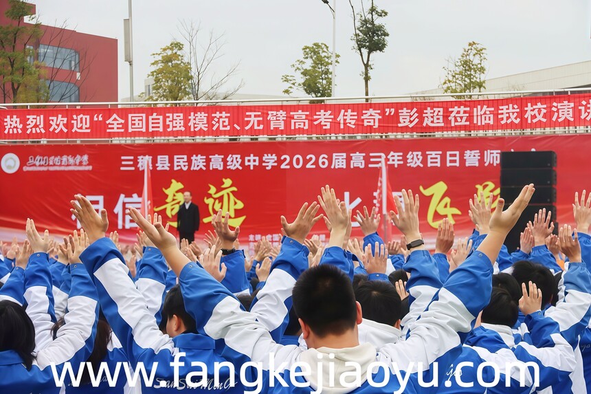 2026.03.03/贵州省黔东南三穗民族高中方可教育励志演讲时间:2026-03-07 学校:三穗县民族高级中学 时间:3月3日,上午 主题:相信奇迹,无翼飞翔 主讲:方可教育金牌讲师彭超 对象:高三年级全体师生