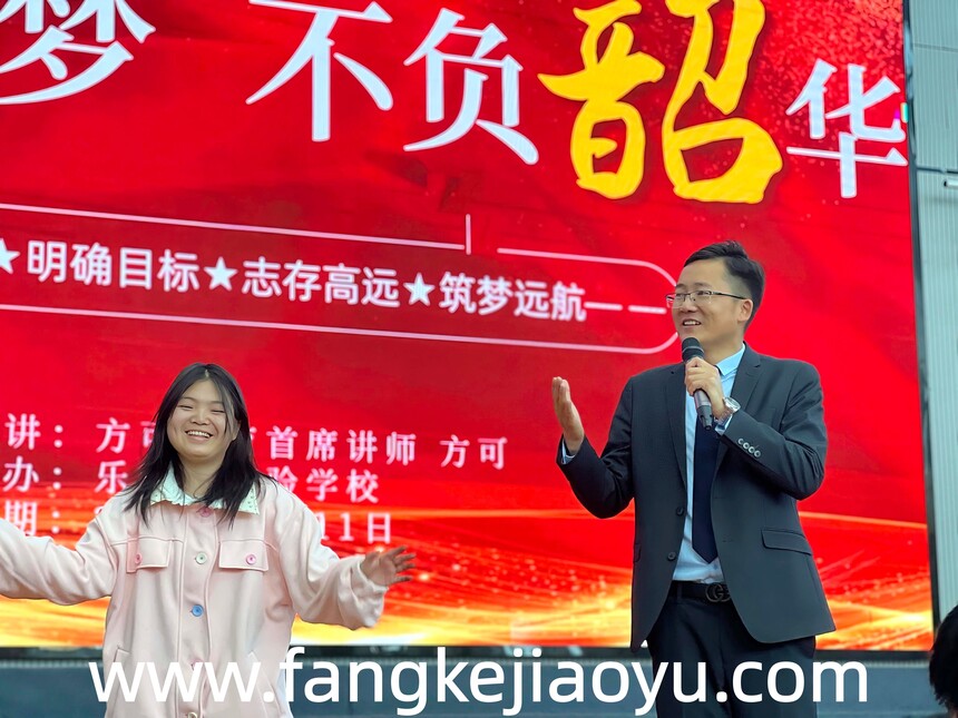 2026.03.11/江西省抚州市乐安县实验学校方可教育励志演讲时间:2026-03-16 学校:乐安县实验学校 时间:3月11日,上午 主题:激情追梦,不负韶华 主讲:首席讲师方可 对象:高三年级全体师生