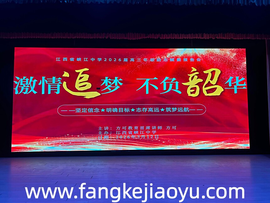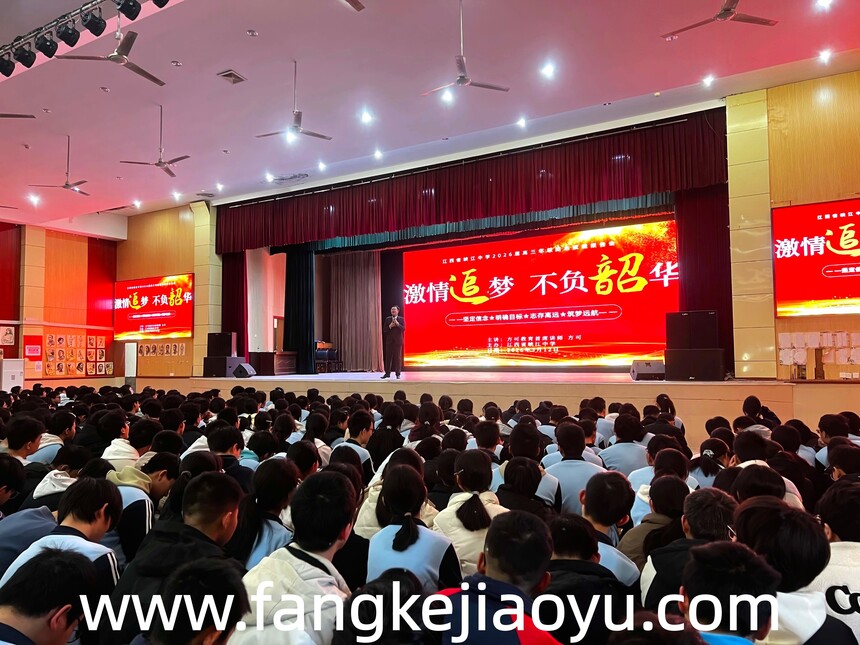2026.03.12/江西省吉安市峡江中学方可教育大型励志演讲时间:2026-03-16 学校:江西省峡江中学 时间:3月12日,下午 主题:激情追梦,不负韶华 主讲:首席讲师方可 对象:高三年级全体师生