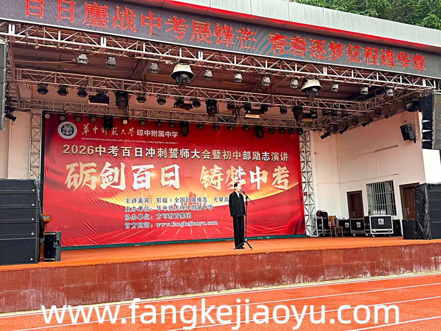 2026.03.12/海南省华中师范大学琼中附属中学方可教育励志演讲时间:2026-03-18 学校:海南省华中师范大学琼中附属中学(初中部) 时间:3月12日,上午 主题:相信奇迹,无翼飞翔 主讲:方可教育金牌讲师彭超 对象:初三年级全体师生