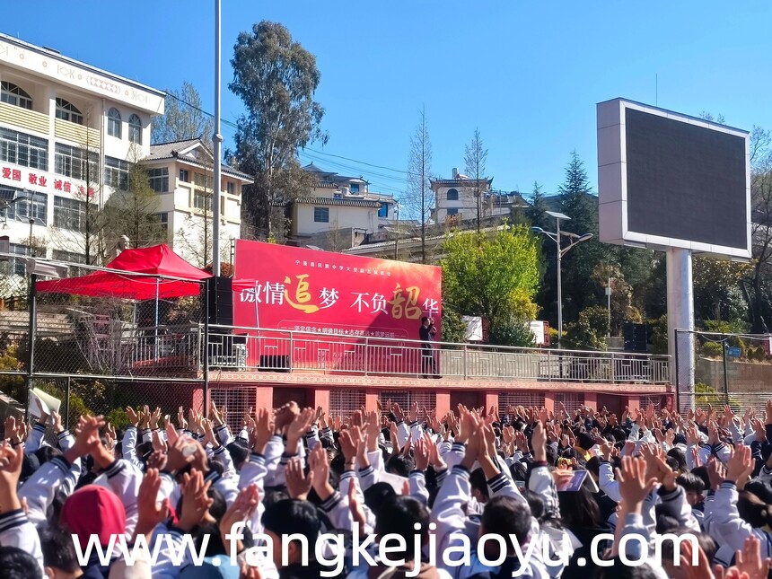 2026.03.27/云南省丽江市宁蒗县民族中学方可教育励志演讲时间:2026-03-30 学校:云南省宁蒗民族中学 时间:3月27日,上午 主题:激情追梦,不负韶华 主讲:金牌讲师罗帅磊 对象:全校师生