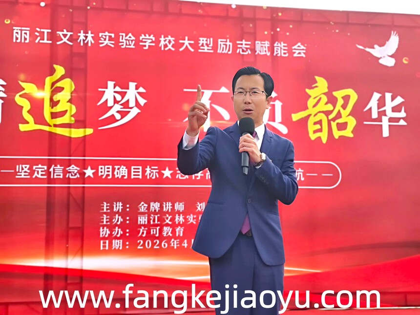 2026.04.02/云南省丽江市文林实验学校方可教育励志演讲时间:2026-04-07 学校:丽江文林实验学校 时间:4月2日,上午 主题:激情追梦,不负韶华 主讲:金牌讲师刘勇 对象:全校师生
