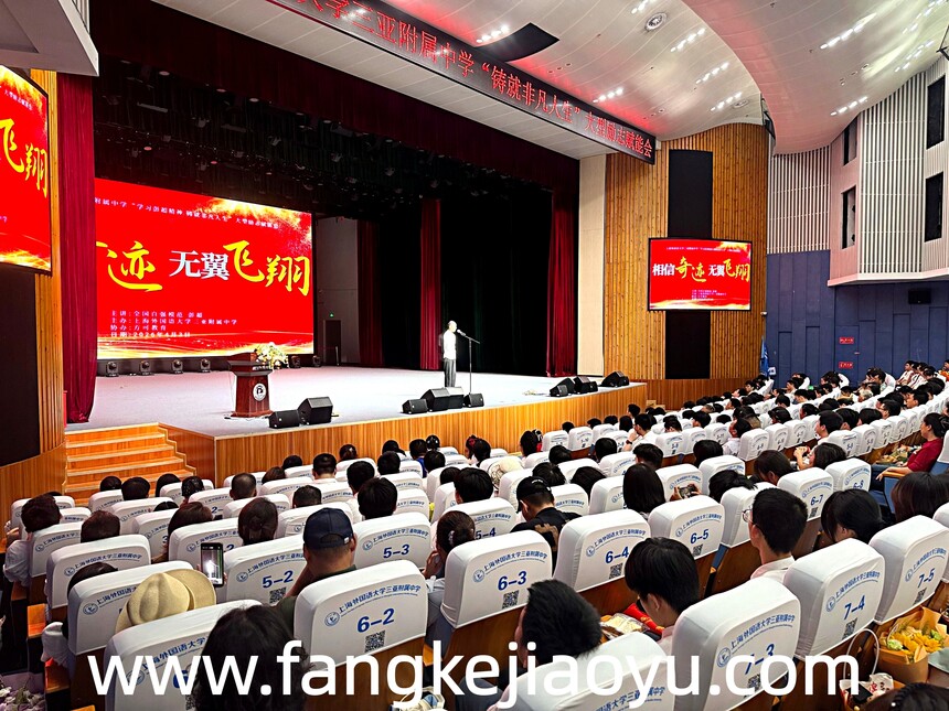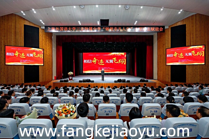 2026.04.03/海南省三亚市上海外国语大学三亚附中方可教育励志演讲时间:2026-04-13 学校:上海外国语大学三亚附属中学 时间:4月3日,上午 主题:相信奇迹,无翼飞翔 主讲:方可教育金牌讲师彭超 对象:初高三年级全体师生