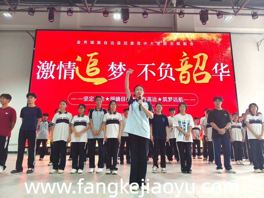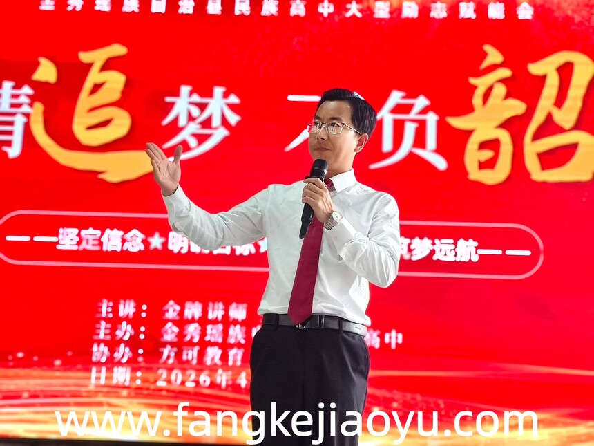 2026.04.14/广西来宾市金秀县民族高中方可教育励志演讲时间:2026-04-17 学校:金秀瑶族自治县民族高中 时间:4月14日,下午 主题:激情追梦,不负韶华 主讲:金牌讲师刘勇 对象:高三年级全体师生+高二旁听