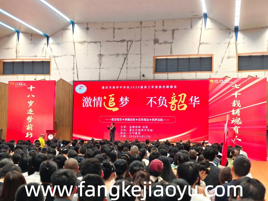2026.04.17/重庆市南坪中学校方可教育大型励志演讲时间:2026-04-20 学校:重庆市南坪中学校 时间:4月17日,下午 主题:激情追梦,不负韶华 主讲:金牌讲师刘勇 对象:高三年级全体师生