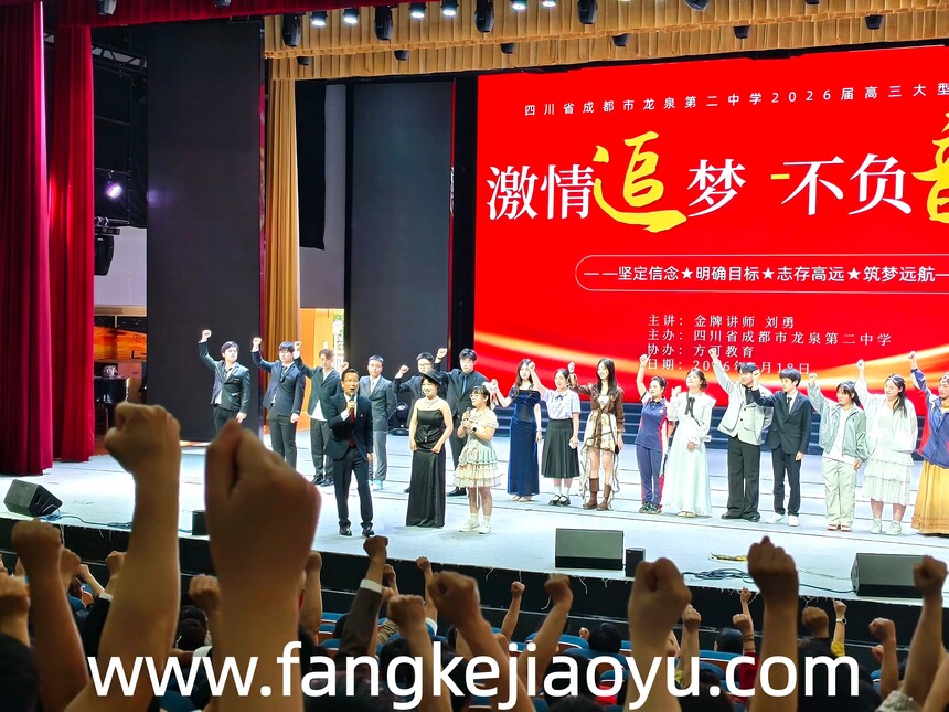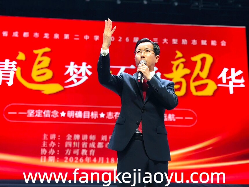 2026.04.18/四川省成都市龙泉第二中学方可教育励志演讲时间:2026-04-20 学校:四川省成都市龙泉第二中学 时间:4月18日,下午 主题:激情追梦,不负韶华 主讲:金牌讲师刘勇 对象:高三年级全体师生
